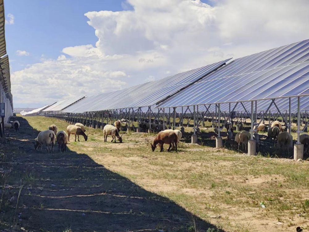 “牧光儲”項目依托當?shù)刎S富的農(nóng)牧資源,采用光伏板上發(fā)電,光伏板下種草、牧羊的方式,構(gòu)建新能源開發(fā)與畜牧業(yè)協(xié)同發(fā)展的“牧光互補”新模式。