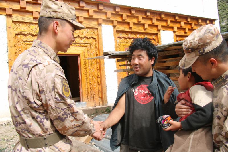 “非常感謝你們,不僅幫助孩子脫險,還這么熱心地給他擦藥?!睎|旺鄉(xiāng)村民格桑緊緊握住官兵們的手,感激不已地說。