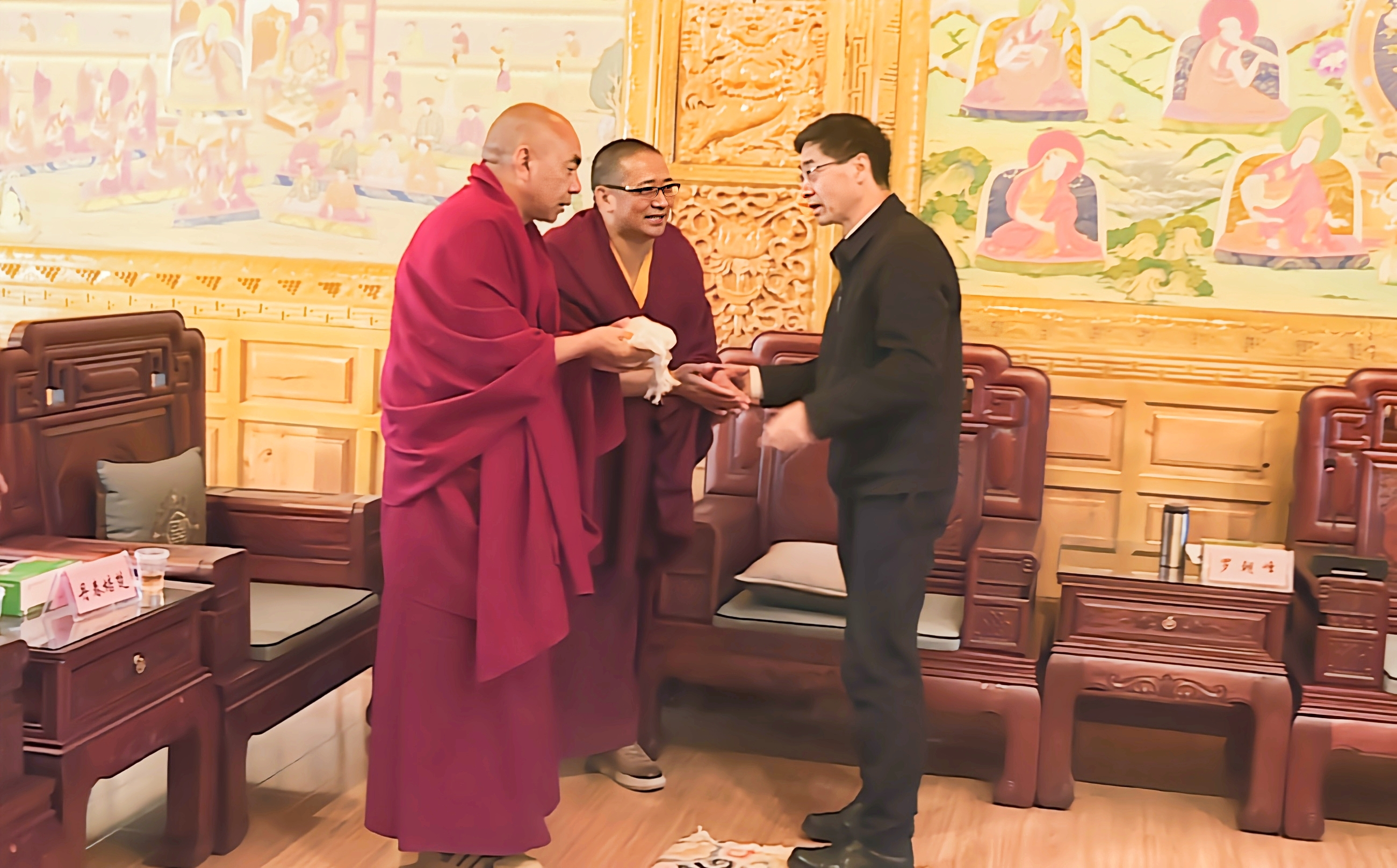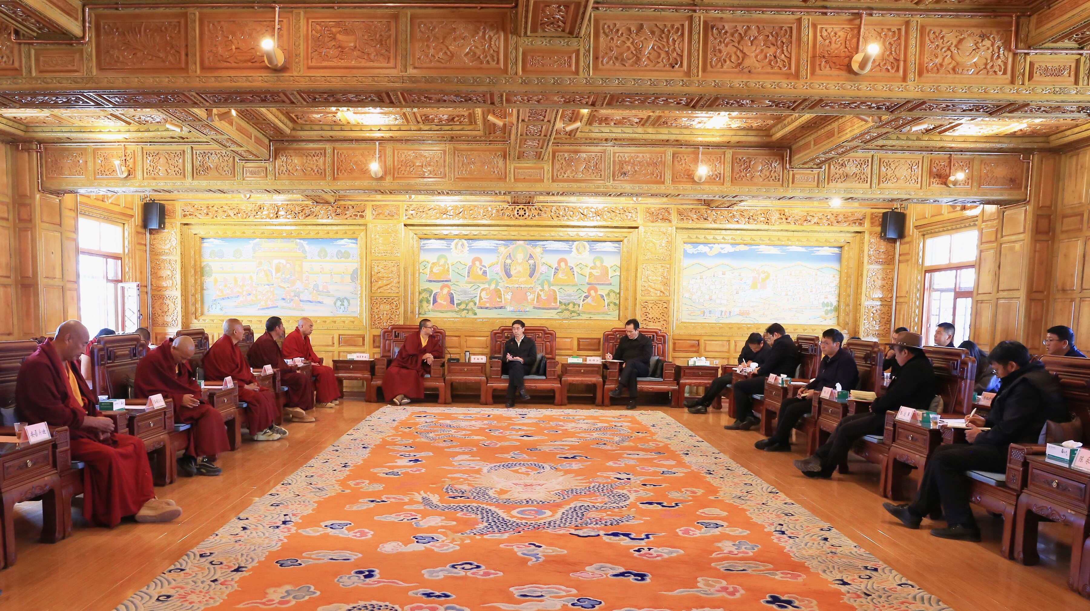 在松贊林寺,羅朝峰與宗教界代表人士深入交流座談,詳細(xì)了解僧人學(xué)修、生活等情況,面對(duì)面傾聽他們的心聲、訴求,引導(dǎo)僧人們從多年來國(guó)家面貌、人民生活發(fā)生的變化,松贊林寺基礎(chǔ)設(shè)施、僧人修行條件的變化中憶苦思甜,感念黨恩。希望他們珍惜和諧穩(wěn)定的大好局面和良好的修行生活條件,深入踐行習(xí)近平總書記提出的“政治上靠得住、宗教上有造詣、品德上能服眾、關(guān)鍵時(shí)起作用”政治要求,繼承和發(fā)揚(yáng)愛國(guó)愛教的優(yōu)良傳統(tǒng),進(jìn)一步鑄牢中華民族共同體意識(shí)。