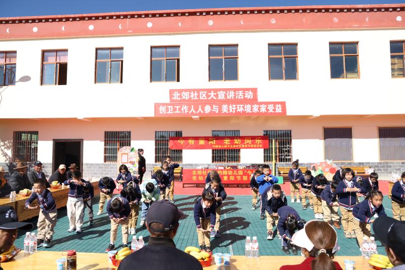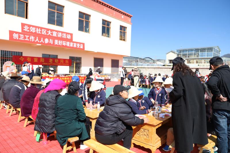 10月23日,香格里拉市建塘鎮(zhèn)北郊社區(qū)與約翰幼兒園開展以“今又重陽(yáng) 老幼同樂”為主題的重陽(yáng)節(jié)活動(dòng)。
