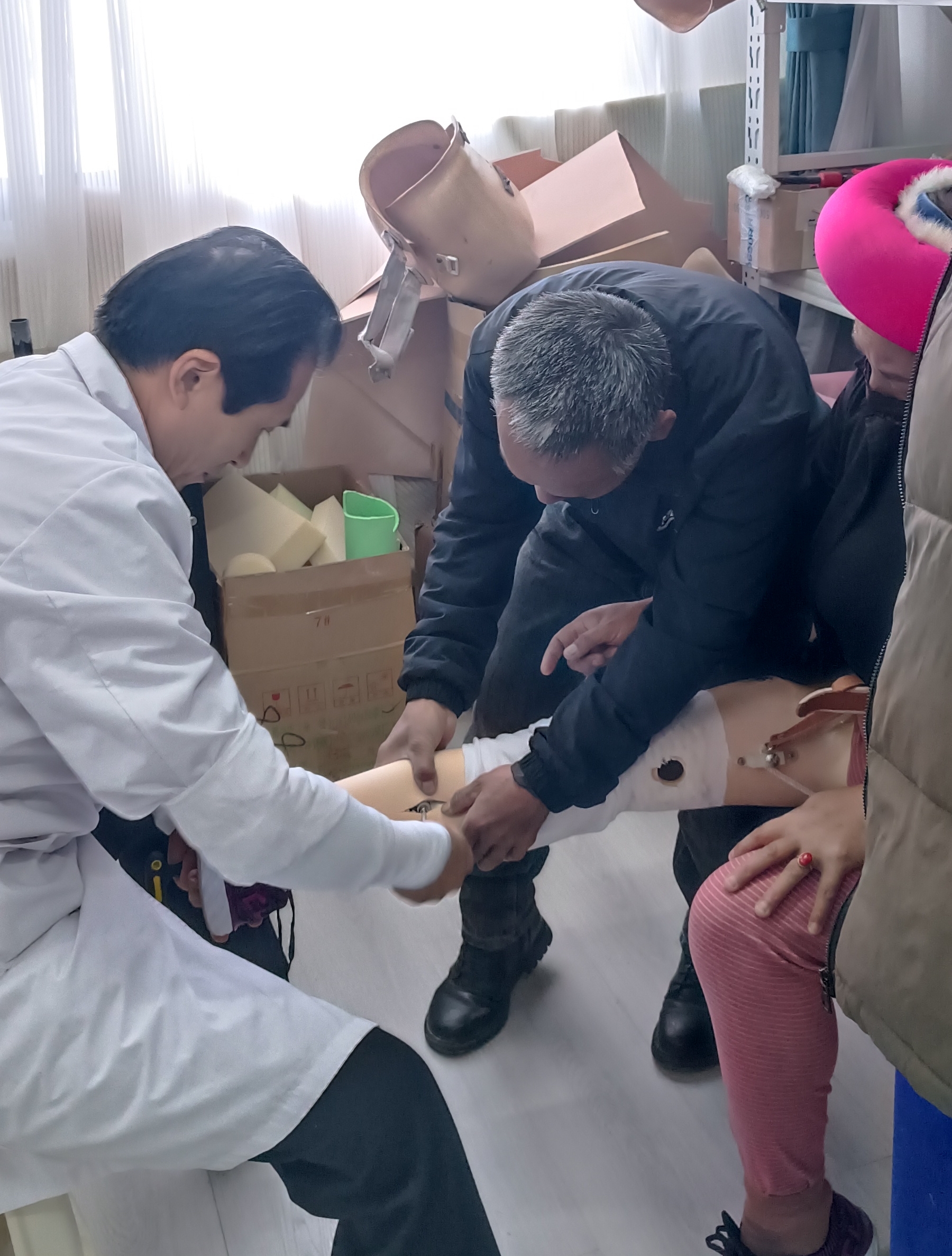 近日,在州康復(fù)中心,隨著30名肢體殘障群體的假肢適配成功,2023年省級殘疾人事業(yè)彩票公益金助聽器、假肢適配服務(wù)項(xiàng)目圓滿結(jié)束。據(jù)了解,該項(xiàng)目在今年還為我州300名聽力殘障群體免費(fèi)適配助聽器。圖為醫(yī)生為肢體殘障人士適配假肢。
