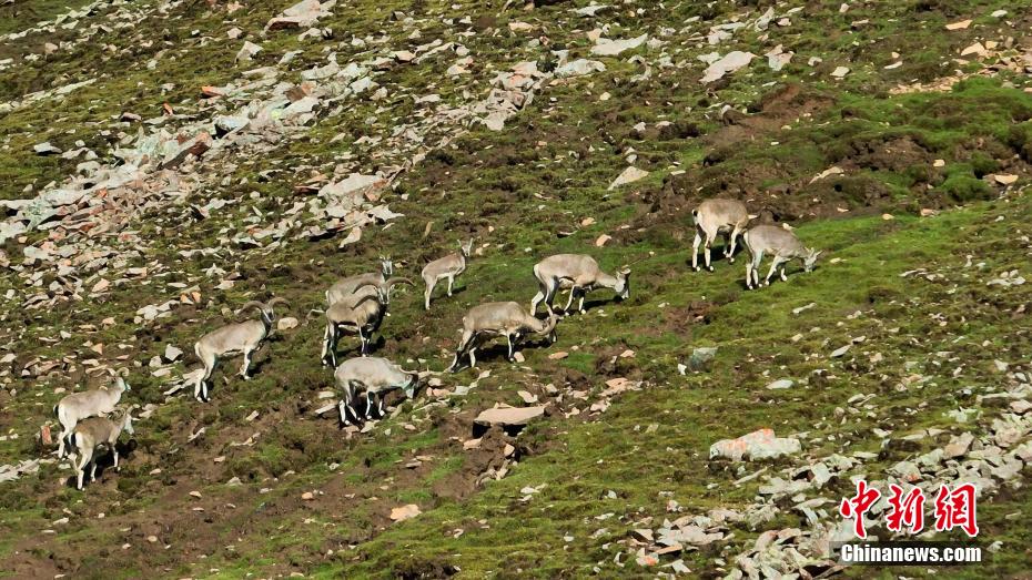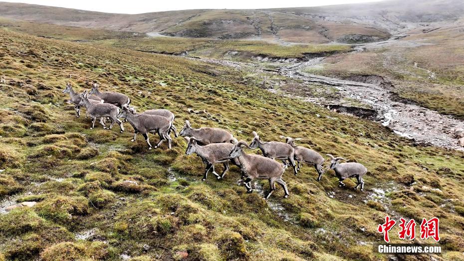 高原深秋,在青海湖北岸的青海省海北藏族自治州海晏縣甘子河鄉(xiāng)境內(nèi),攝影師拍攝到成群巖羊在溫泉濕地游走覓食。畫面中,巖羊“拖家?guī)Э凇痹谏狡律?、風(fēng)雪中奔跑覓食,甚是靈動。據(jù)悉,拍攝到成群巖羊的區(qū)域有一處熱水溫泉,溫泉四季噴涌不竭,水溫達(dá)57到60度,所以當(dāng)?shù)匦纬商赜械男夂?,讓深秋時(shí)的草原依然青綠。巖羊是國家二級保護(hù)動物,擅長“飛檐走壁”,在地形復(fù)雜的山崖上也能如履平地,青灰色的毛色與巖石顏色極為相近,不易察覺。