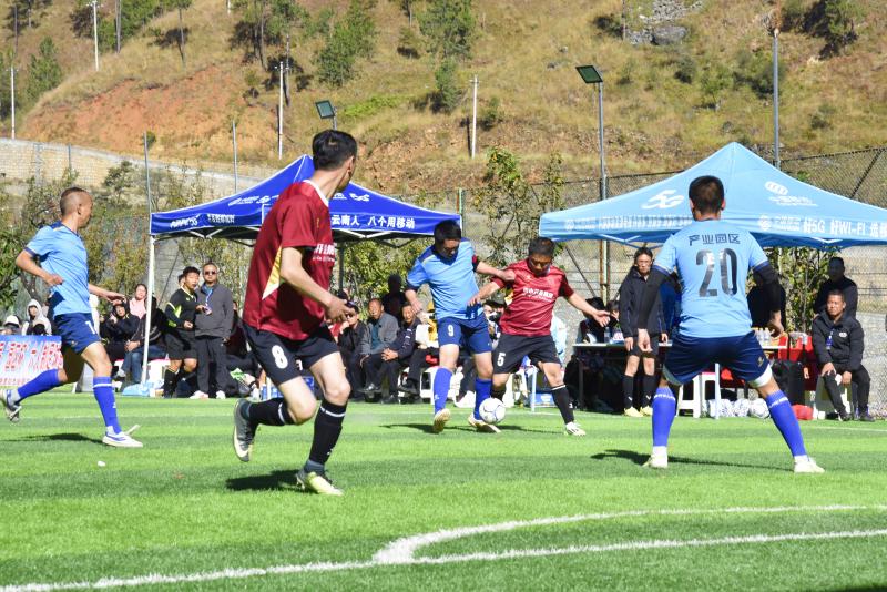 據(jù)了解,“園區(qū)杯”為期3天,共有來自昆明、大理、迪慶的9支代表隊(duì)參賽。比賽采取單循環(huán)積分制的形式進(jìn)行,最終決出冠、亞、季軍。活動(dòng)旨在以足球運(yùn)動(dòng)為橋梁,積極與省內(nèi)開發(fā)區(qū)、產(chǎn)業(yè)園區(qū),毗鄰縣、市互鑒互學(xué),進(jìn)一步增強(qiáng)園區(qū)干部群眾加快推進(jìn)香格里拉產(chǎn)業(yè)園區(qū)高質(zhì)量發(fā)展的向心力和凝聚力,助力園區(qū)高質(zhì)量發(fā)展。 圖為參賽隊(duì)員正在賽場上奮勇比拼。