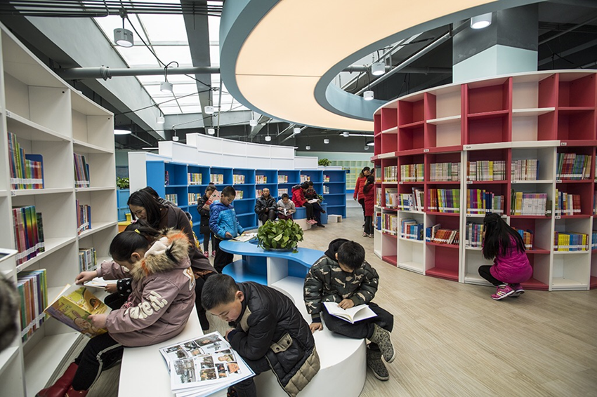 圖為學(xué)生和家長(zhǎng)在圖書(shū)館閱讀書(shū)籍。