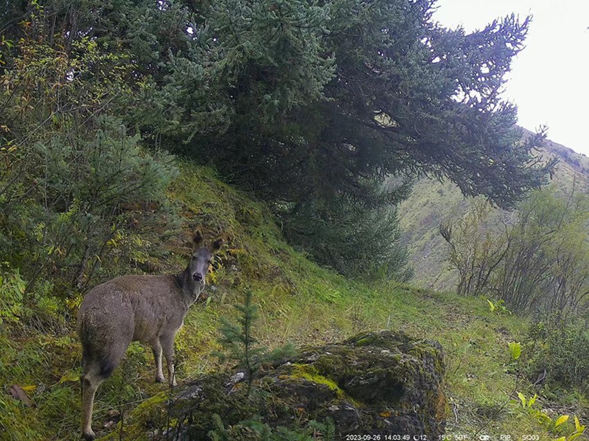 近日,石渠縣洛須白唇鹿自然保護區(qū)的工作人員在整理紅外相機影像時,驚喜地發(fā)現(xiàn)拍攝到國家一級保護野生動物豹、白唇鹿、馬麝等多種野生動物活動的珍貴清晰影像。在監(jiān)測視頻中,還拍攝到有國家二級保護野生動物棕熊、豹貓等多種珍稀野生動物的活動身影。
