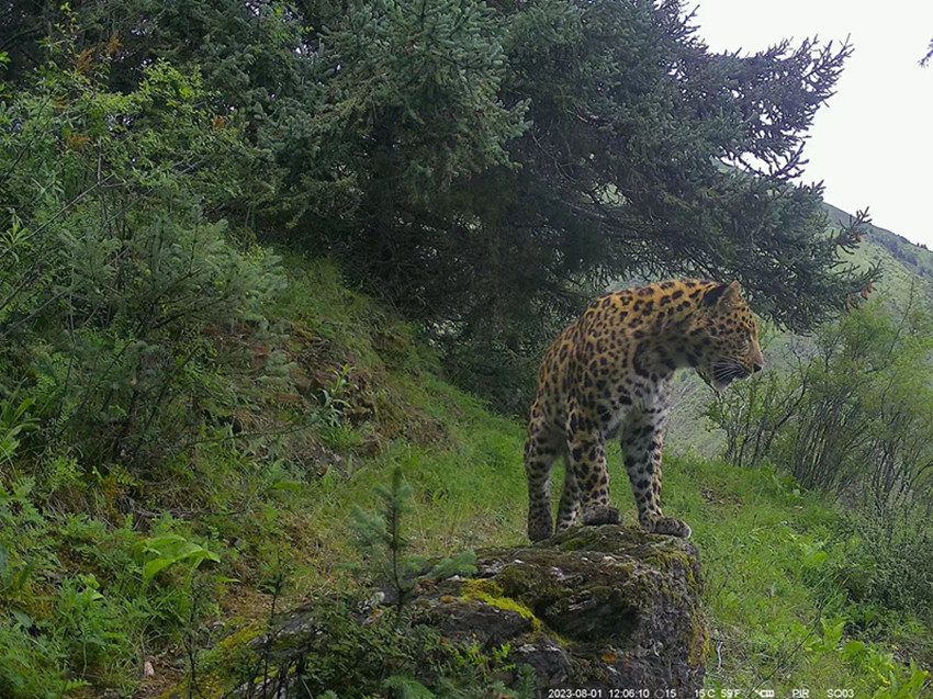 紅外相機影像資料顯示,一只金錢豹正走到石頭上眺望,一只棕熊媽媽正帶著幼崽經(jīng)過,一群白唇鹿在紅外相機前悠閑好奇的觀望……從肉食性、雜食性到植食性,野生動物們在鏡頭里的不時亮相,一定程度證明保護區(qū)內(nèi)生態(tài)系統(tǒng)功能健康,食物鏈結(jié)構(gòu)完整。