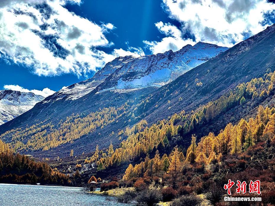 深秋時節(jié),四川省阿壩州小金縣瑪嘉溝迎來一年中最美季節(jié),雪山、冰川、海子、針葉林、原始森林等在藍天白云下變得色彩斑斕,層林盡染,已是一幅半山彩林半山雪的壯觀景象。陳邦亮 攝