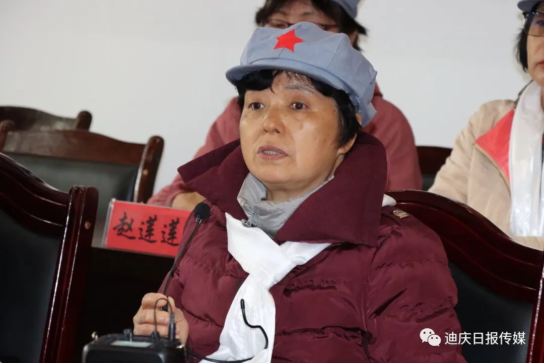 甘祖昌之女甘仁榮回憶起父親,眼中噙滿淚水。其父親甘祖昌,中國人民解放軍少將軍銜,被稱為“將軍農(nóng)民”。1926年參加村農(nóng)民協(xié)會,1927年加入中國共產(chǎn)黨,翌年參加中國工農(nóng)紅軍。在革命生涯中,歷任湘贛軍區(qū)紅軍兵工廠副科長、八路軍第三五九旅供給部軍需科科長、三五九旅供給部副部長、晉綏軍區(qū)三五九旅供給部部長、西北野戰(zhàn)軍第二縱隊后勤部部長、第一野戰(zhàn)軍二軍后勤部部長等職。先后參加了國內(nèi)革命戰(zhàn)爭、抗日戰(zhàn)爭、解放戰(zhàn)爭,為了黨和人民的事業(yè)出生入死、數(shù)次負傷 。中華人民共和國成立后,甘祖昌歷任新疆軍區(qū)后勤部副部長兼供給處處長,兼財務(wù)處處長,新疆軍區(qū)后勤部部長。1955年被授予少將軍銜,榮獲八一勛章、獨立自由勛章、解放勛章等 。1957年,甘祖昌在辭去新疆軍區(qū)后勤部部長的職務(wù)后,帶著家人回到闊別20多年的家鄉(xiāng),從此開始了29年的“農(nóng)民生涯”。從江西到延安再到新疆,甘祖昌將人生中三分之二的時光都奉獻給了國家獨立和民族解放的革命斗爭中。其母親龔全珍是開國少將甘祖昌夫人、江西省萍鄉(xiāng)市南陂小學(xué)原校長。1957年8月,龔全珍隨丈夫甘祖昌回家鄉(xiāng)江西省蓮花縣務(wù)農(nóng)并一直從事鄉(xiāng)村教師工作。離休后,又扶貧助學(xué),開辦“龔全珍工作室”服務(wù)社區(qū)、群眾。著有紀實作品《我和老伴甘祖昌》。習(xí)近平總書記先后兩次親切接見龔全珍,親切地稱她為“老阿姨”。龔全珍曾榮獲第四屆全國道德模范稱號、“感動中國”2013年度十大人物 、全國優(yōu)秀共產(chǎn)黨員 、“感動江西十大教育年度人物”“全國模范退役軍人”等稱號。甘仁榮在座談會上談及父母從小對子女嚴苛的家教,從飯桌上絕不能浪費一粒糧的教育再到了父母離開城市回農(nóng)村搞建設(shè)的過往,從幼兒的少不更事,到如今自己親身來到迪慶,感受父輩走過的路,真切地體會到了父輩身上不畏艱險、堅韌不拔、頑強拼搏、攻堅克難的奮斗精神和為黨和人民的事業(yè)“鞠躬盡瘁、死而后已”的偉大獻身精神?,F(xiàn)場氣氛莊嚴肅穆,令人感動。