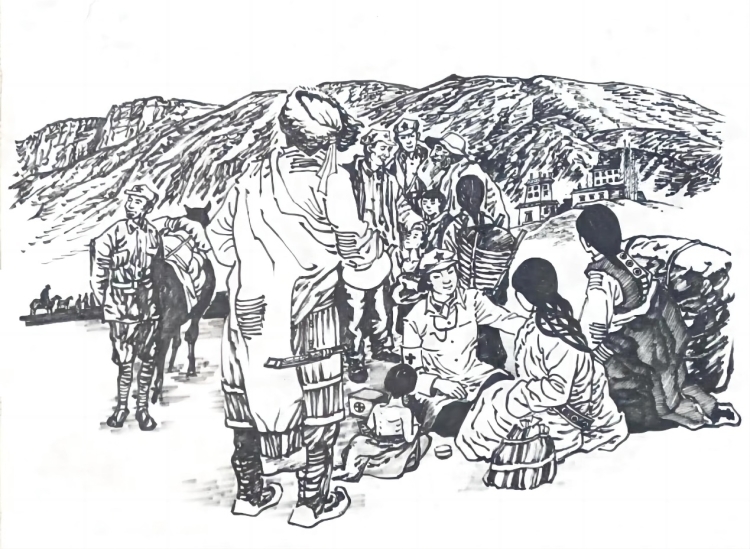 紅軍醫(yī)生與藏族百姓(四川民族學(xué)院郭重曦繪)