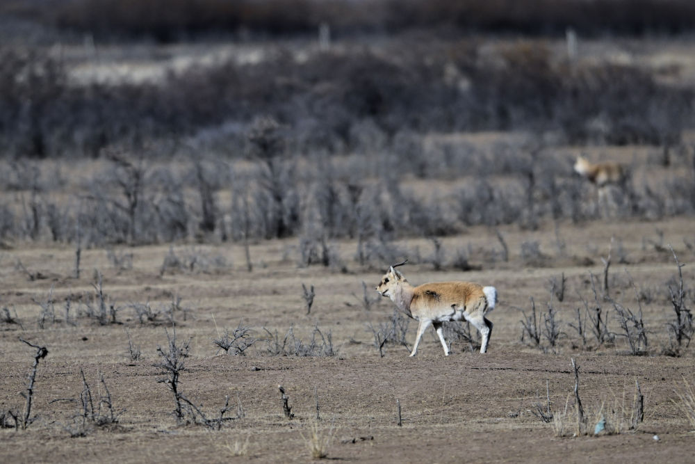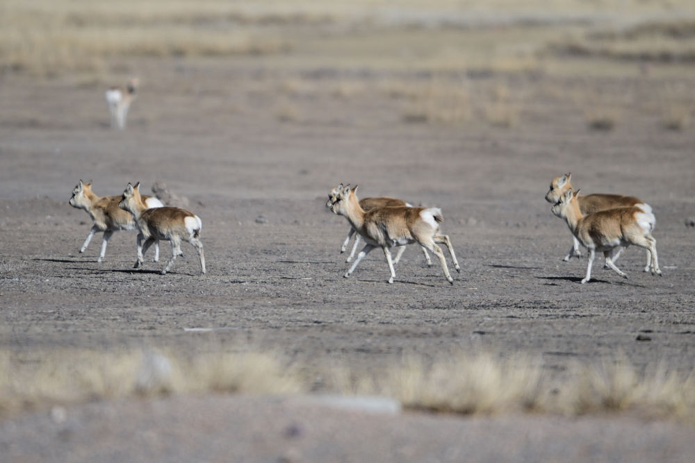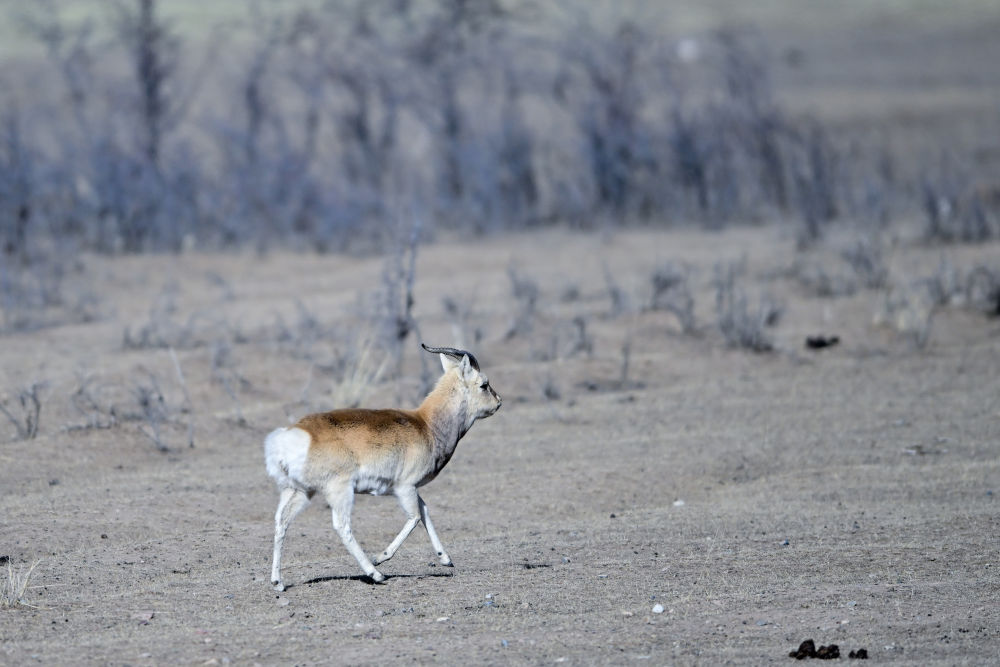 這是1月24日在青海省海北藏族自治州剛察縣哈爾蓋鎮(zhèn)境內的草原上拍攝的普氏原羚。新華社記者 耿輝凰 攝