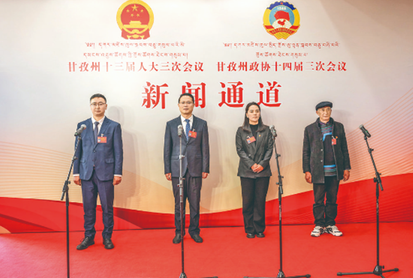 1月30日下午,甘孜州十三屆人大三次會(huì)議“代表通道”正式開啟。瀘定縣委副書記、縣長(zhǎng)王蕾,得榮縣日雨鎮(zhèn)黨委書記江潔,亞丁景區(qū)管理局游客服務(wù)科科長(zhǎng)余光榮,瀘定縣磨西鎮(zhèn)青岡坪村支部書記、村委會(huì)主任呂東才四位州人大代表在現(xiàn)場(chǎng)回應(yīng)社會(huì)關(guān)切熱點(diǎn)。