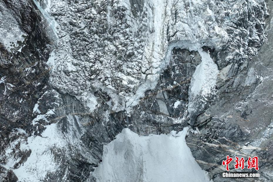 2月2日,四川省甘孜藏族自治州瀘定境內(nèi),一場雪后的貢嘎山披上了厚厚的“白紗”,在貢嘎山東坡順山而下的冰川沿海螺溝山谷綿延10多公里,就像一條“巨龍”盤在山谷中,十分壯觀。貢嘎山坐落于橫斷山系大雪山中段,主峰海拔7756米,被譽為蜀山之王。海螺溝冰川也是貢嘎山數(shù)十條冰川中規(guī)模最大、形態(tài)最美的一條。經(jīng)歷了2022年“9·5”瀘定地震后,海螺溝景區(qū)道路等重建工作完成,步游道、旅游服務設施升級,游客逐步回升。航拍鏡頭下的海螺溝冰川粒雪盆下端的“冰川冰”。記者 劉忠俊 攝