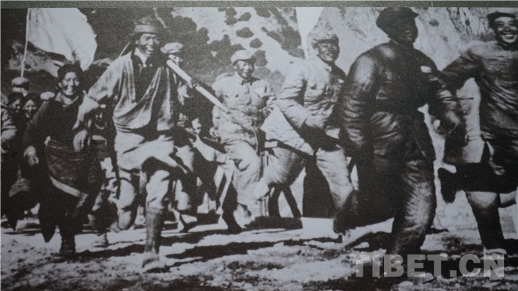 圖為川藏公路巴河橋梁架通后的歡呼場(chǎng)面老照片 翻拍:張宇