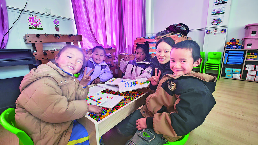 卻揚(yáng)多杰介紹,2019年政府投資1259萬(wàn)元新建了教學(xué)樓、宿舍樓、食堂及操場(chǎng),還配套了相應(yīng)的教學(xué)及生活設(shè)施,同時(shí)還投資200萬(wàn)元新建了幼兒園。目前小學(xué)有六個(gè)年級(jí)共121個(gè)學(xué)生,幼兒園有孩子79人?!暗轿覀冞@里上學(xué),學(xué)生什么都不用帶,人來(lái)就行,不管是學(xué)習(xí)用品還是生活用品,學(xué)校都會(huì)提供。幼兒園也是免費(fèi)上,但因?yàn)橛變簣@沒(méi)有餐食經(jīng)費(fèi),家長(zhǎng)送來(lái)的時(shí)候會(huì)給孩子帶午飯,老師也會(huì)悉心照顧孩子吃飯?!?/p>