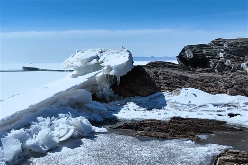3月25日青海湖部分解凍區(qū)域。當智 攝