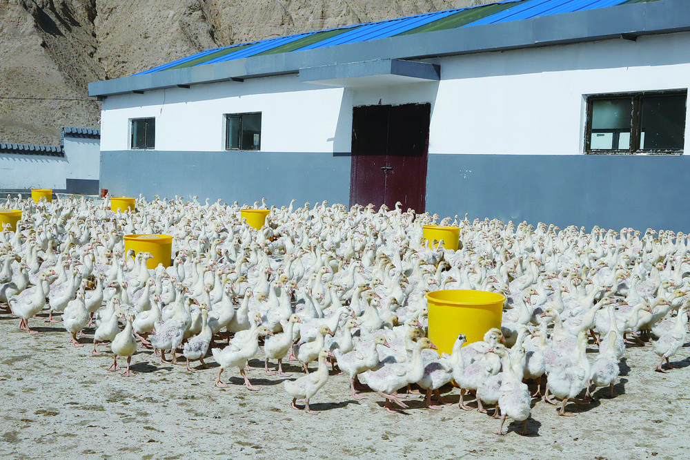色爾加村黨支部書記羊壯項杰看著成群的種鵝,向記者介紹,“幸福鵝”進入到生長的關鍵時期,飼養(yǎng)員給鵝換上了精粗結合的飼料補充營養(yǎng),等鵝長得又大又壯,出籠的時候能賣個好價錢。