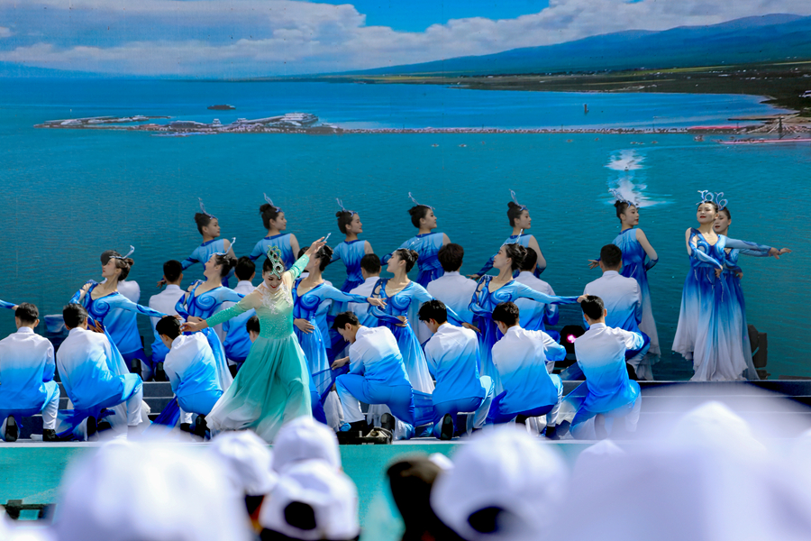 圖為“山宗水源·大美青?!贝杭疚幕糜蜗盗谢顒郁吆D稀べF德第十八屆黃河文化旅游季開幕式現(xiàn)場。新華網(wǎng) 黃開森 攝