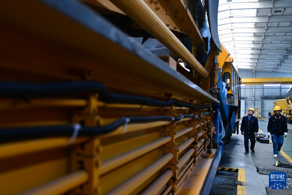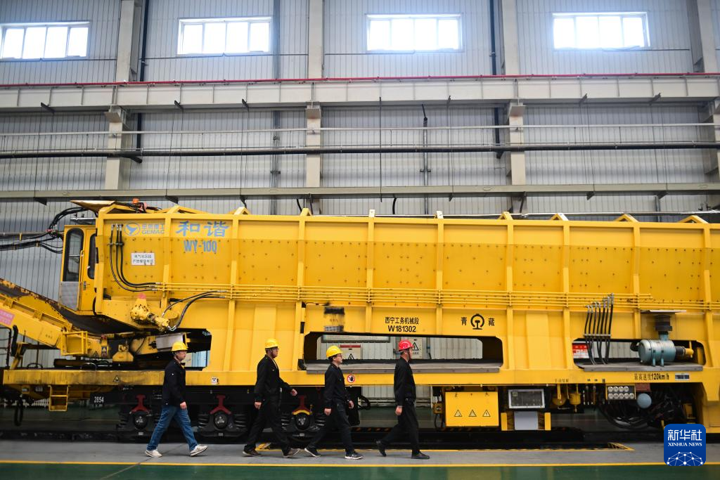 4月25日,中國鐵路青藏集團有限公司西寧工務(wù)機械段職工在進行清篩車環(huán)車檢查。新華社記者 張龍 攝
