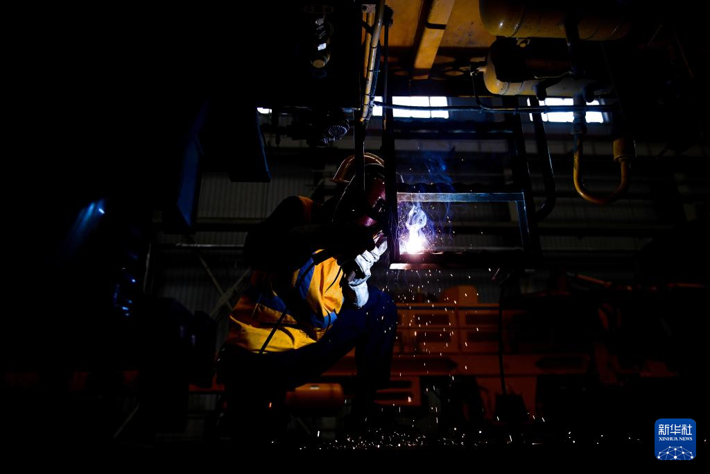 4月25日,中國鐵路青藏集團有限公司西寧工務(wù)機械段職工在焊接車梯。新華社記者 張龍 攝