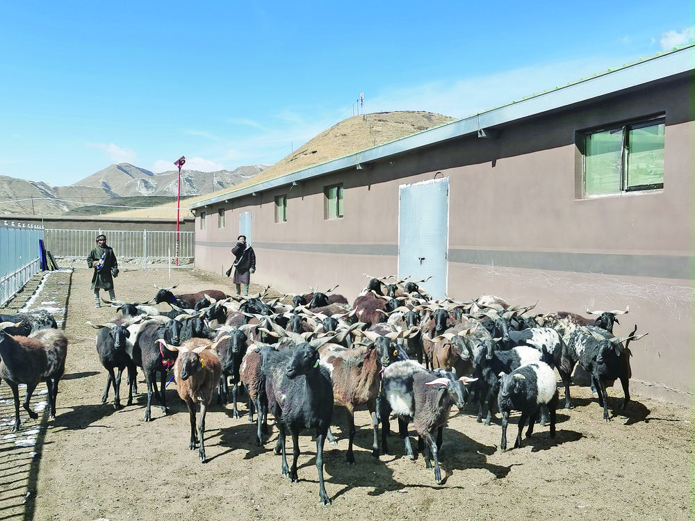 “‘尕瑪頓丹’羊擴(kuò)繁基地占地面積1.75公頃,有畜棚4座,草料棚1座,病畜隔離室、管理用房、排水渠、堆糞場(chǎng)等一應(yīng)俱全?!奔獾麓妩h支部書記桑斗合加介紹,合作社成立之初,調(diào)動(dòng)全村牧民參與村集體經(jīng)濟(jì)項(xiàng)目創(chuàng)建的積極性,鼓勵(lì)大家用牲畜和現(xiàn)金入股,結(jié)果230戶,每戶拿出2000元,眾籌460000元,一次性買進(jìn)150只“尕瑪頓丹”羊。
