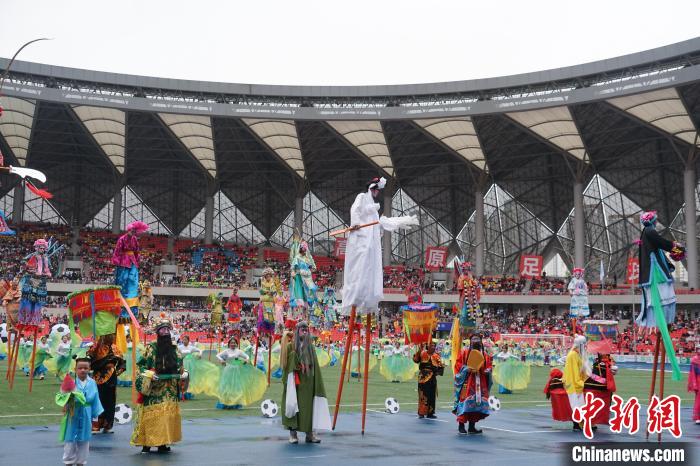 圖為開(kāi)幕式現(xiàn)場(chǎng)社火高蹺進(jìn)行表演。馬銘言 攝