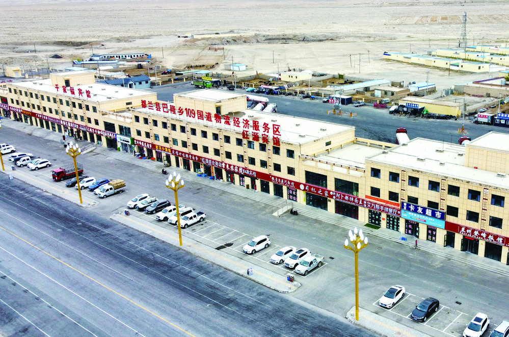 從都蘭縣城出發(fā),沿著109國(guó)道向西行駛100多公里,到達(dá)巴隆鄉(xiāng)109國(guó)道物流經(jīng)濟(jì)服務(wù)區(qū)。整個(gè)服務(wù)區(qū)干凈整潔,道路一側(cè)是一排黃色三層小樓,各類商鋪云集,樓前的空地上停放著不少車輛。