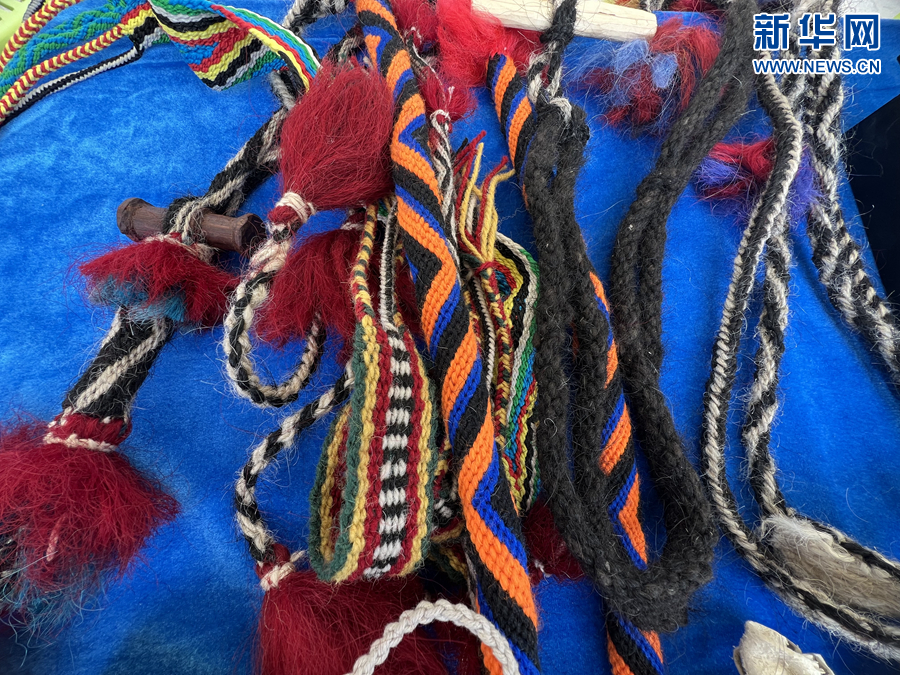 馬肚帶(彩色)和套牛繩(黑色)。新華網(wǎng) 魚(yú)昊 攝