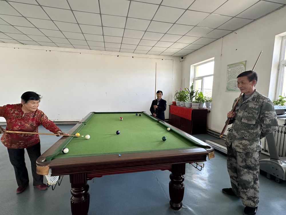 “在這兒吃住免費(fèi),飯有人做,衣服有人洗,每月還有100多元的養(yǎng)老金和零花錢。”在活動(dòng)室里,王金蓮手握臺球桿,熟練推桿。入住敬老院后,運(yùn)動(dòng)成了她的生活日常。