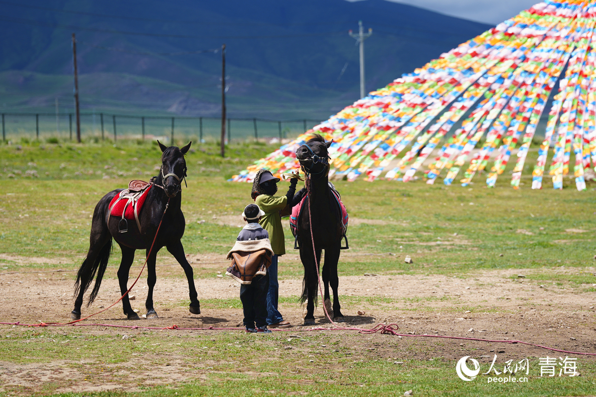 牦牛群旁邊的草地上,十幾匹駿馬或是載著游客慢走,或是配合游客拍照,騎馬體驗(yàn)也很受歡迎。
