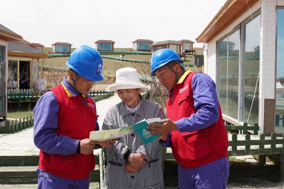 9月2日,“石榴籽”電力流動(dòng)驛站工作人員為果洛藏貢麻村崗日梅朵旅游度假村工作人員講解安全用電知識。(旺瑪多杰 攝)