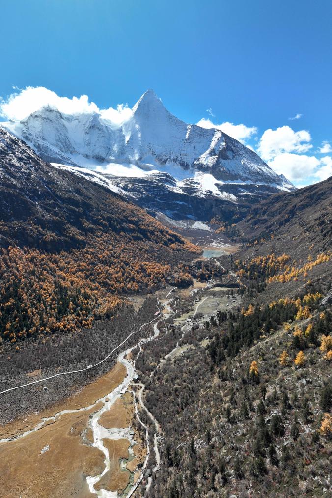 10月31日在四川省甘孜藏族自治州稻城亞丁景區(qū)拍攝的夏諾多吉雪山(無人機照片)。新華社記者 胥冰潔 攝