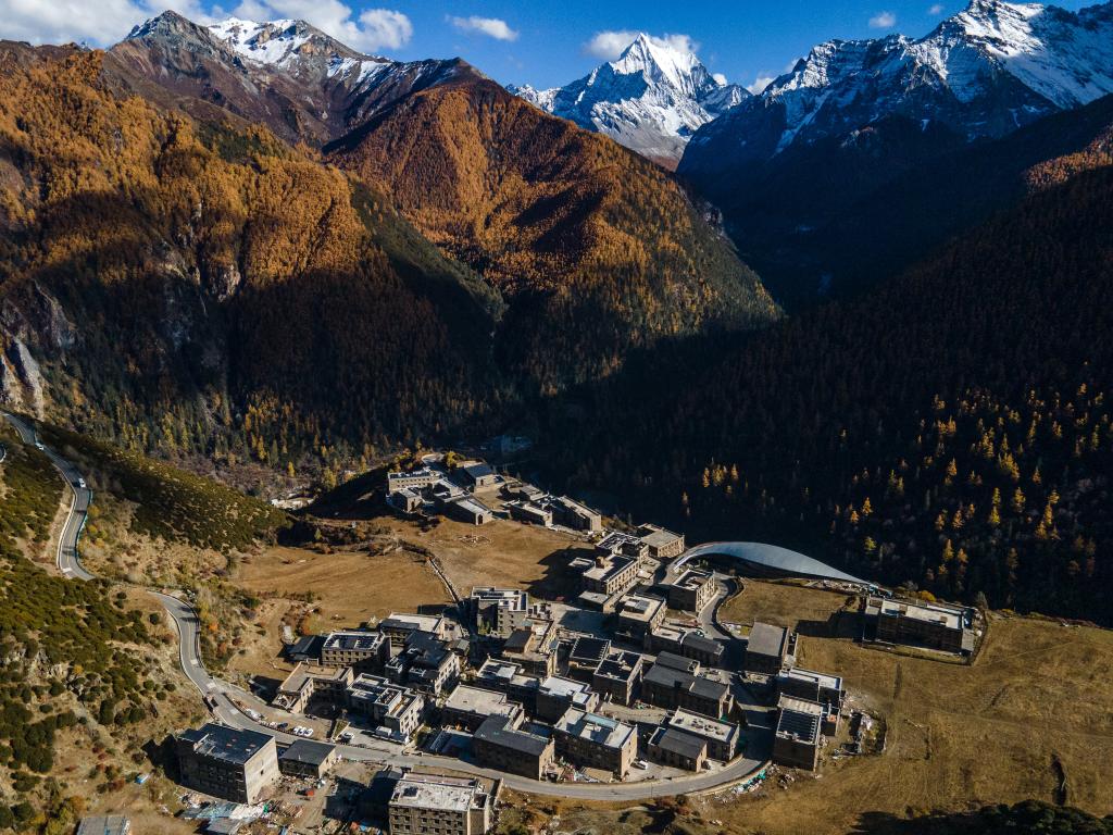 這是位于四川省甘孜藏族自治州稻城亞丁景區(qū)內(nèi)的亞丁村(10月31日攝,無人機照片)。新華社記者 儲加音 攝