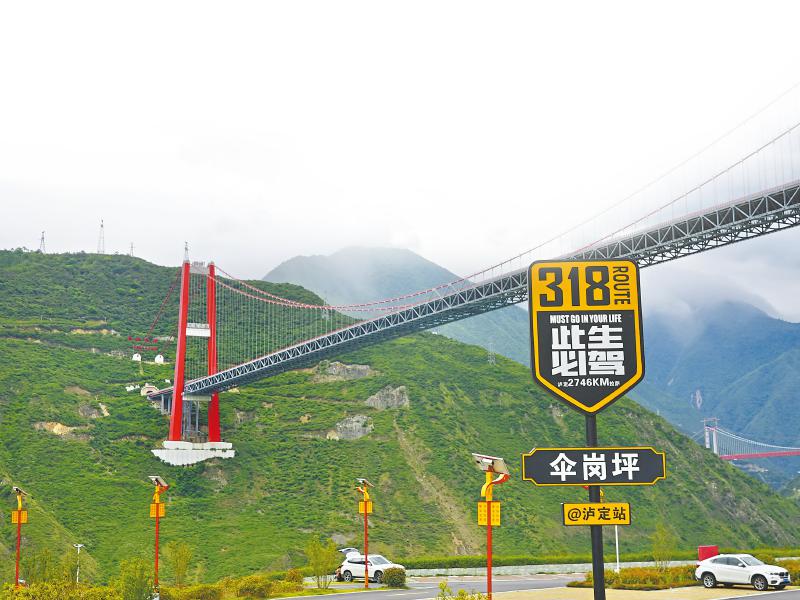 川藏公路大渡河懸索橋與興康特大橋,是自駕國(guó)道318線的兩個(gè)重要打卡點(diǎn),前者展現(xiàn)川藏公路最初的模樣,后者彰顯中國(guó)交通基礎(chǔ)設(shè)施建設(shè)的巨大成就。建設(shè)在興康特大橋旁的傘崗坪驛站,不斷將自駕游客“剎一腳”的流量轉(zhuǎn)變?yōu)椤傲袅俊薄?/p>