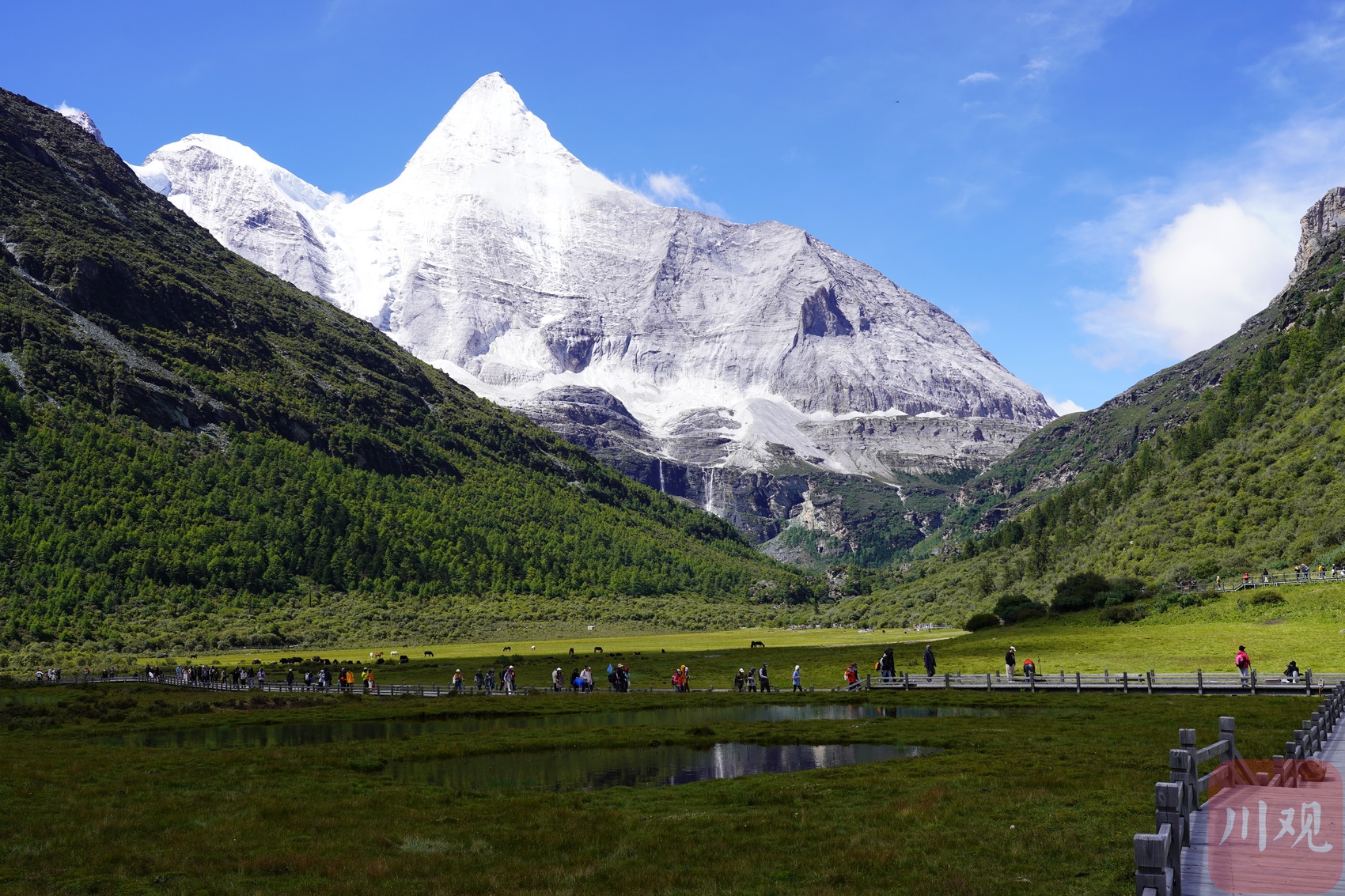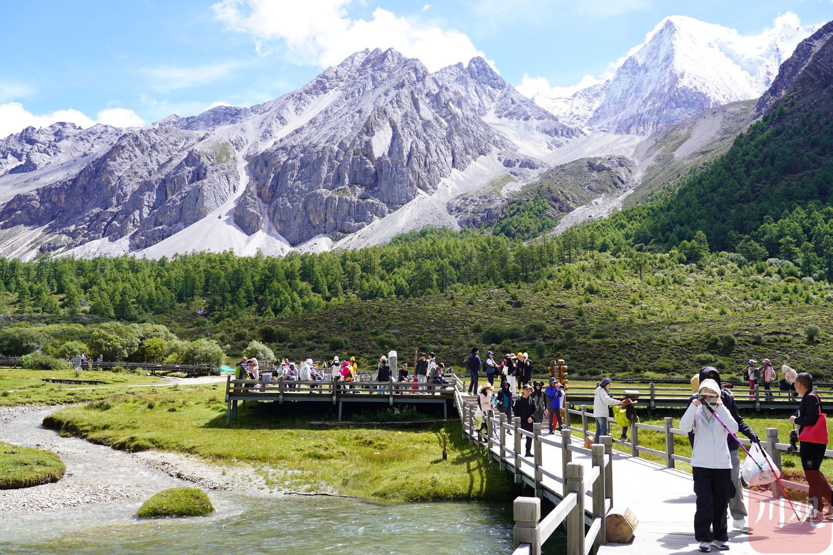 景區(qū)內(nèi)旅游設(shè)施完善,觀光車、步道、觀景臺(tái)、休息站等一應(yīng)俱全。游客們在工作人員引導(dǎo)下有序參觀游覽,現(xiàn)場秩序井然。雖然還未到金秋時(shí)節(jié),但初秋的亞丁已經(jīng)展現(xiàn)出獨(dú)特的魅力,吸引了不少游客前來打卡留念。