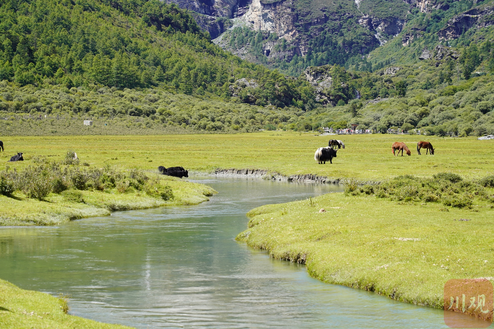 洛絨牛場牦牛與河流相映成趣 攝影 張黎萍