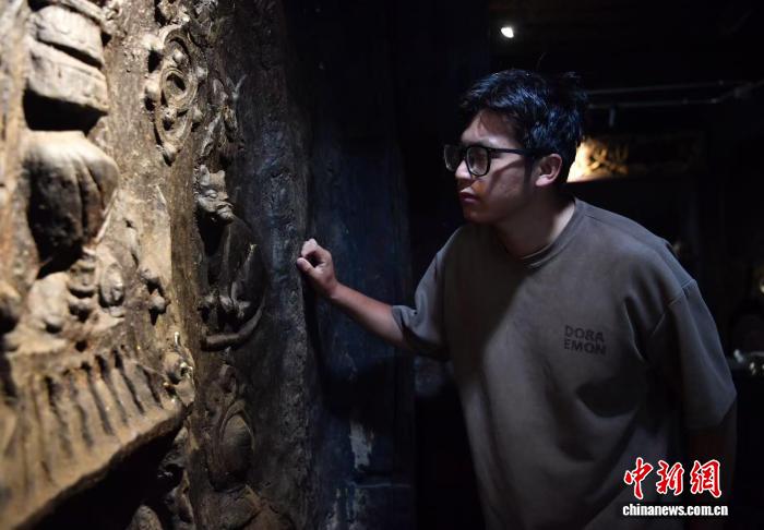 尋常工作日的上午,鄉(xiāng)城縣青德鎮(zhèn)宗薩木府有著不尋常的熱鬧。走進(jìn)這棟有著三百余年歷史的藏納式民居,房間內(nèi)的雕梁畫棟、繁復(fù)壁畫與房屋古樸的白色外觀形成強(qiáng)烈反差。高懸客廳的明嘉靖年間“天雨流芳”匾額,傳言為納西族所贈(zèng),有“勉勵(lì)讀書”之意。火塘旁,多位游客正圍著精美的藏式香巴拉貓泥塑合影。