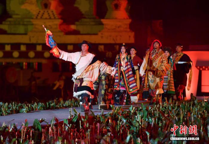整場田園“瘋”裝秀共分為四個篇章。燈光秀一結(jié)束,第一篇章“夢中的香巴拉”情景劇緩緩啟幕。在悠揚的藏族山歌中,村民們身穿傳統(tǒng)服飾,演繹著鄉(xiāng)城人民日常生活的幸福圖景:田間的辛勤勞作、豐收時洋溢的笑容……每一個場景都浸潤著濃濃的鄉(xiāng)情,仿佛將觀眾帶入真實而溫暖的田園生活。