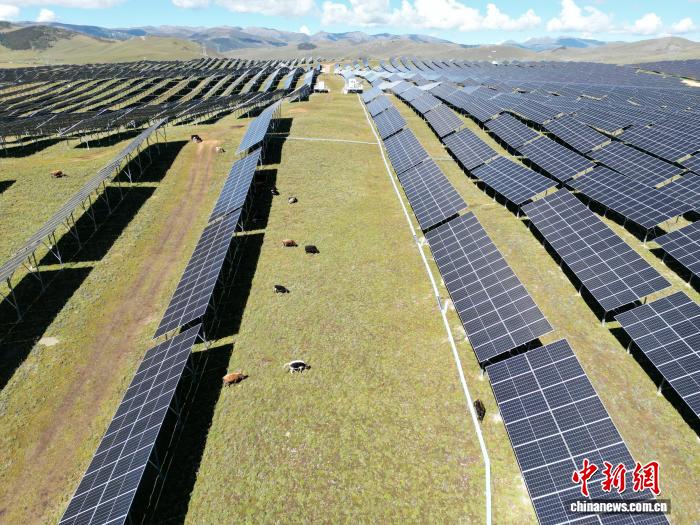 初秋的四川鄉(xiāng)城頂貢大草原,海拔超過4000米的高原綠意未褪,成千上萬(wàn)塊光伏板順著地勢(shì)鋪展,給高原穿上一襲銀甲,在湛藍(lán)天空下熠熠生輝。在1.8米高的光伏板蔭庇之下,牧草長(zhǎng)勢(shì)更旺,牛群踱步啃食青草。這一“上面發(fā)電、下面放牧”的“牧光互補(bǔ)”景象,正是當(dāng)?shù)赝苿?dòng)清潔能源與高原牧業(yè)融合發(fā)展的生動(dòng)實(shí)踐。