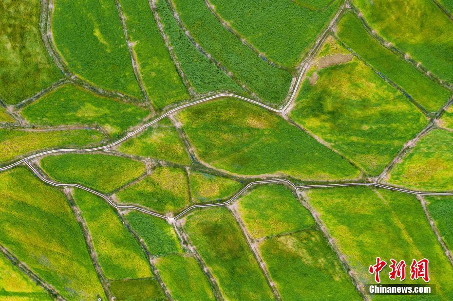 圖為7月28日,航拍洛隆縣優(yōu)質(zhì)青稞生產(chǎn)基地。中新社記者 何蓬磊 攝