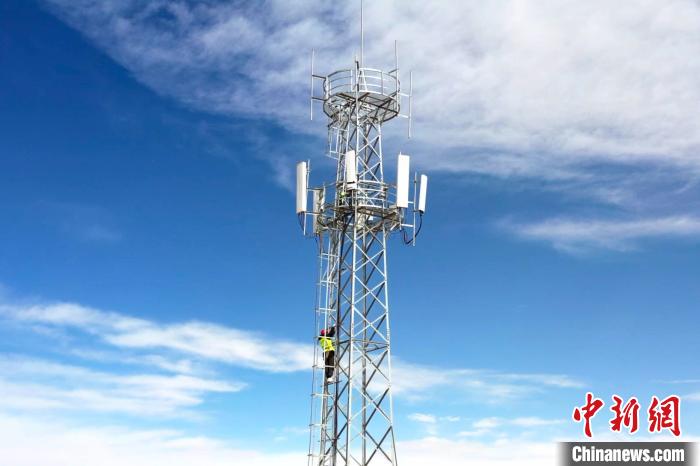 圖為中國移動西藏公司那曲雙湖縣分公司工作人員正在巡檢基站。李瑞偉 攝