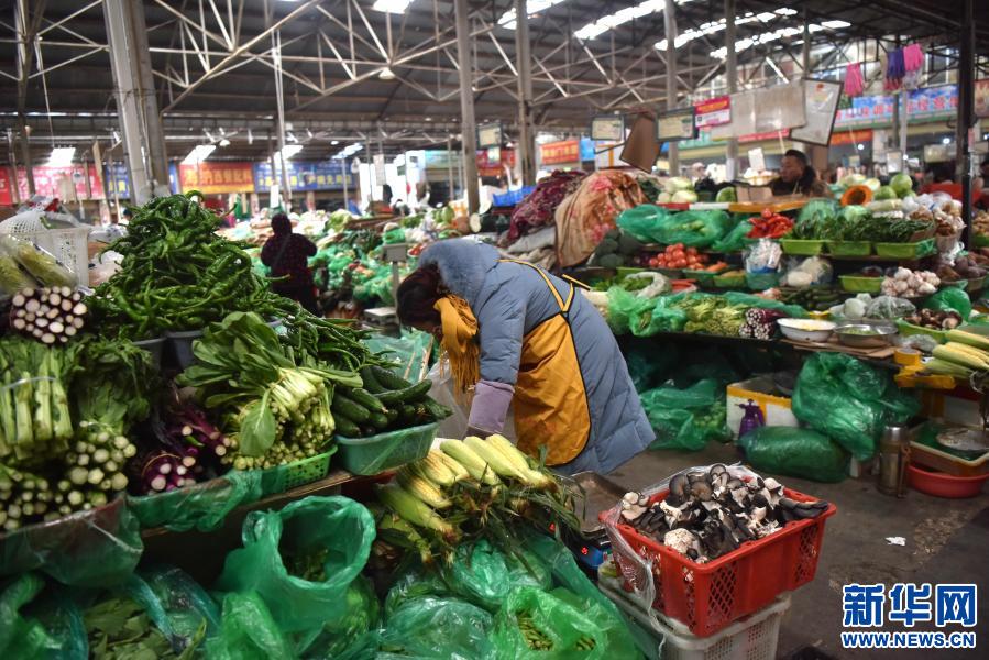 拉薩市藥王山農(nóng)貿(mào)市場蔬菜區(qū),商戶在整理菜品(2019年12月29日攝)。 新華社記者 周錦帥 攝