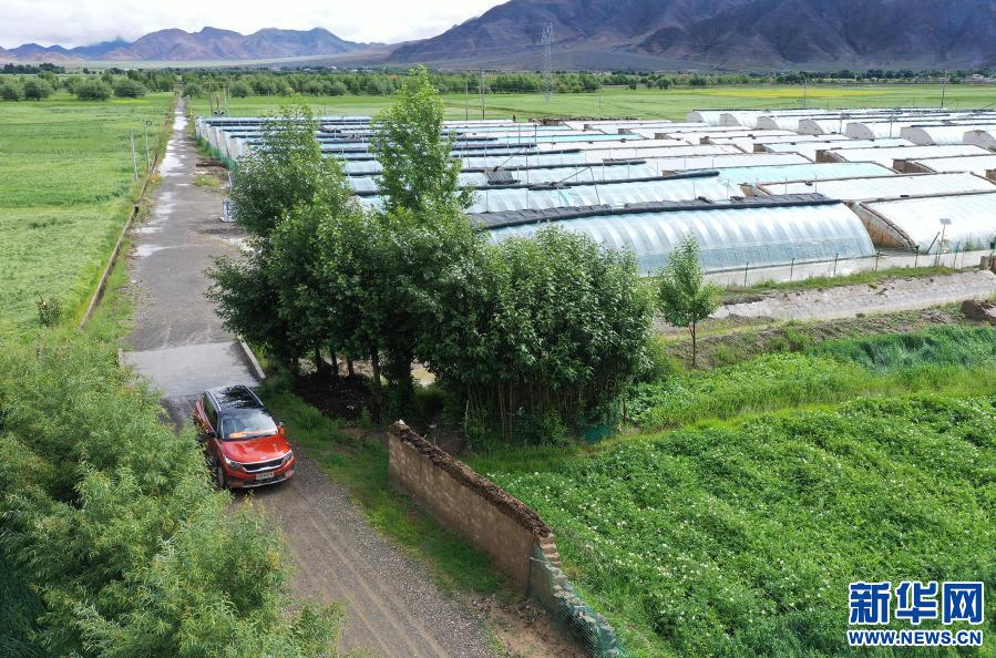 位于西藏日喀則市白朗縣的蔬菜生產(chǎn)基地一角(2020年8月3日無人機拍攝)。新華社記者 李賀 攝