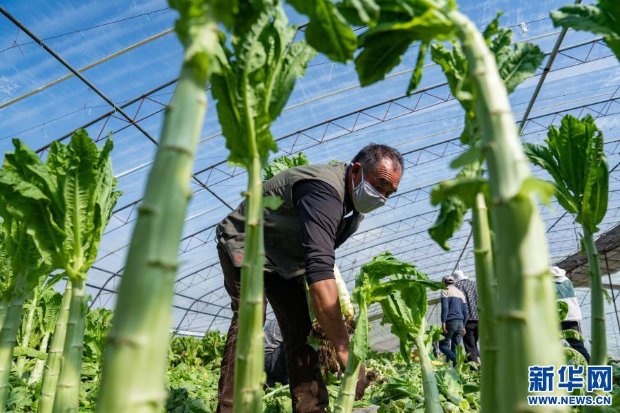 2020年2月20日,西藏拉薩市曲水縣南木鄉(xiāng)江村的村民在大棚內(nèi)采摘蔬菜。 新華社記者 普布扎西 攝