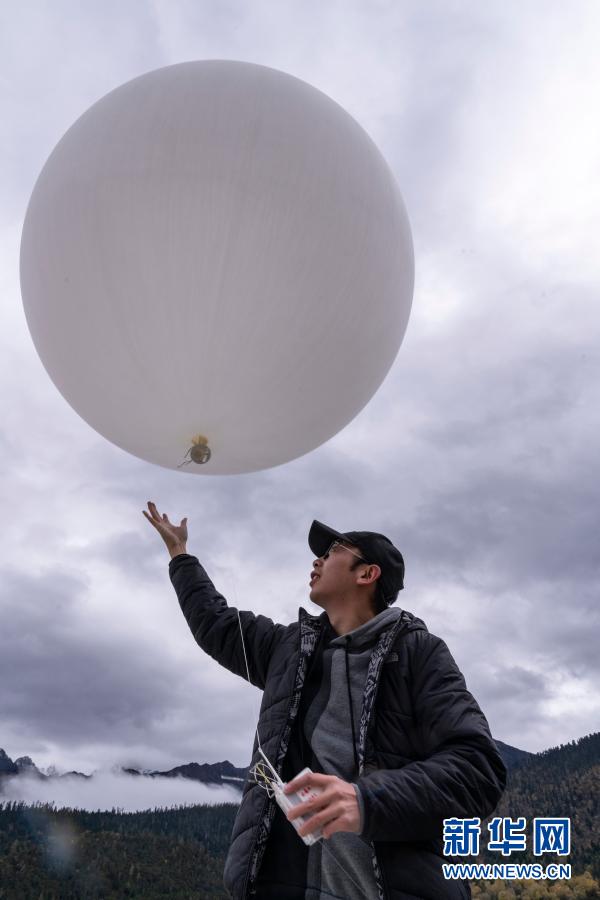 2019年10月21日,隨著探空氣球成功施放并進(jìn)入萬米高空收集大氣垂直數(shù)據(jù),第二次青藏科考“地氣相互作用及其氣候效應(yīng)”觀測(cè)試驗(yàn)第三階段在西藏林芝啟動(dòng)。新華社記者 孫非 攝
