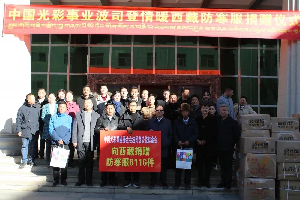 捐贈(zèng)儀式上,王念東同志代表西藏接受捐贈(zèng)并向群眾代表發(fā)放波司登防寒服,對(duì)中國(guó)光彩事業(yè)基金會(huì)和波司登公益基金會(huì)表示感謝。波司登公益基金會(huì)共捐贈(zèng)價(jià)值人民幣389萬(wàn)元的6116件羽絨服,惠及西藏4個(gè)市(地)6000余貧困群眾。