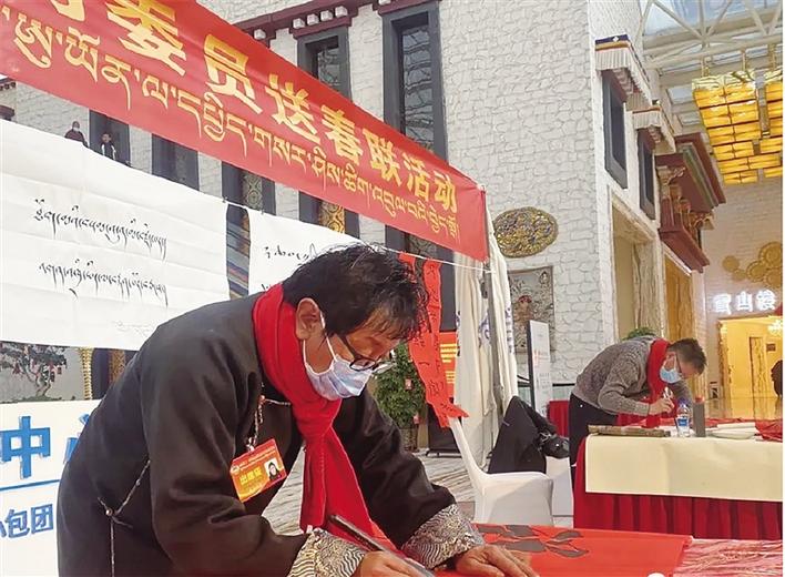 近日,自治區(qū)文聯(lián)、拉薩市文聯(lián)組織8名書(shū)法家前往拉薩圣地天堂洲際大飯店為政協(xié)委員送“福”、送春聯(lián)。