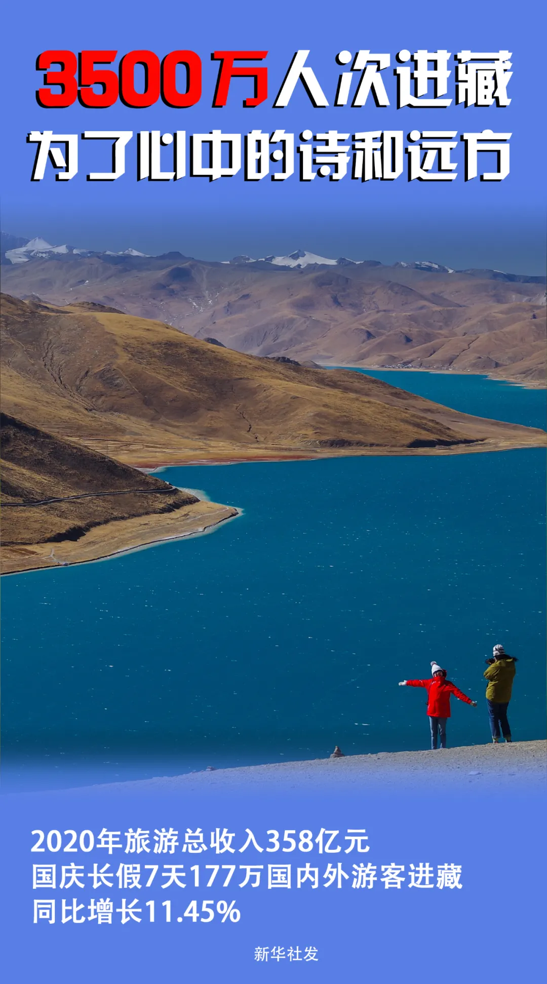 2020年,西藏共接待國內(nèi)外游客3500萬人次,實現(xiàn)旅游總收入358億元。當年國慶長假前7天,共接待國內(nèi)外游客177.46萬人次,同比增長11.45%;實現(xiàn)旅游收入9.35億元,同比增長14%。
