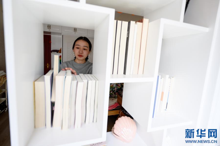 2月10日,在西藏自治區(qū)山南市乃東區(qū),格央在家中整理書架。書架上擺滿了她購買的各類文學書籍。新華社記者 劉金海 攝
