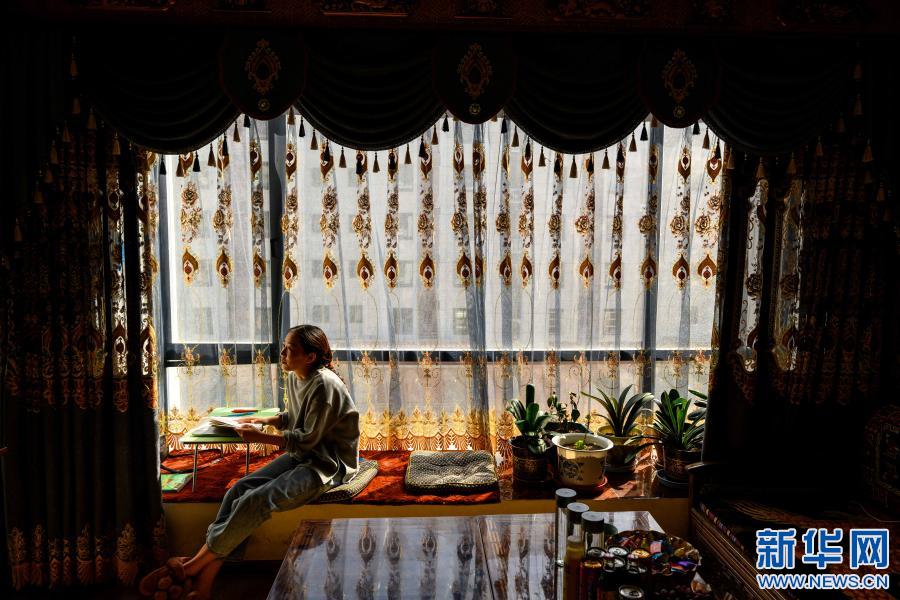 2月10日,在西藏自治區(qū)山南市乃東區(qū),格央在家中研讀文學理論書籍。新華社記者 劉金海 攝