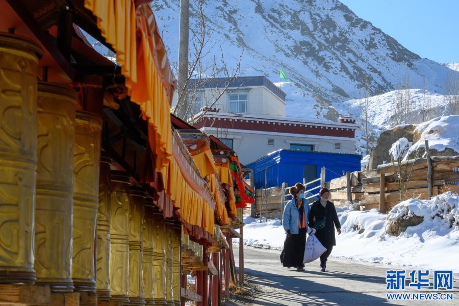 2月12日,在西藏自治區(qū)山南市乃東區(qū)澤當鎮(zhèn),格央(左)和家人一起,在藏歷新年第一天轉山祈福。新華社記者 劉金海 攝